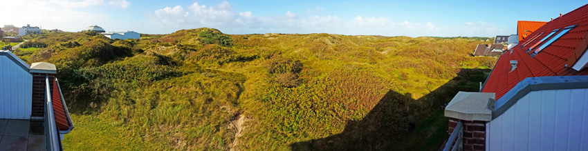eröffnet sich Ihnen vom Balkon der Strandvilla Langeoog II in Richtung Dünen.