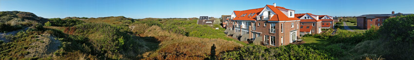 Strandvilla Langeoog in direkter Dünenlage: zweites Haus von rechts, mit der Markise