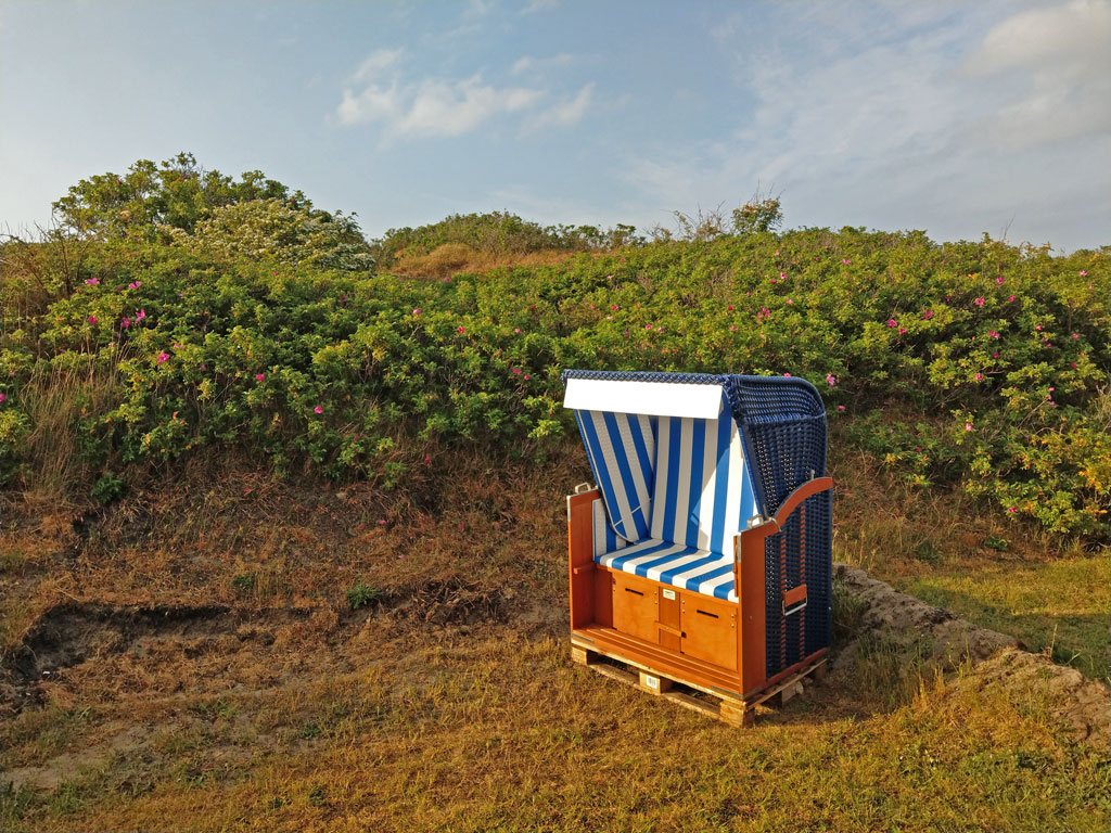 Geschützt vor Wind und Wetter im Stranadkorb: reine Seeluft und Ruhe aus erster Hand!