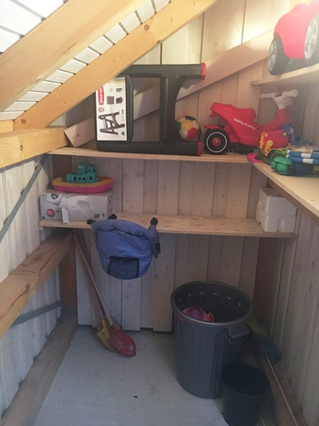 Im Schuppen haben Sie Platz: Stellen Sie die Koffer bei früher Ankunft oder späte Abreise gern hier ab (bitte vorher absprechen). Strandspielzeug und Fahrzeuge finden ihren Platz und warten hier auf die Jüngsten.