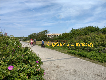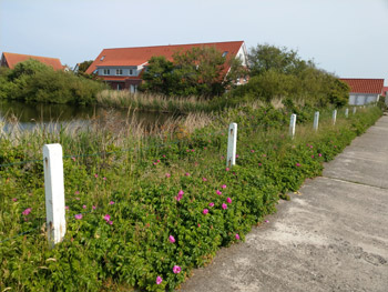 Dünen, Heckenrosen, ein wenig frequnentierter Fahrradweg: