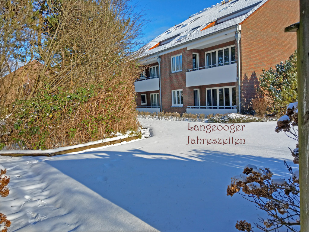 Die Wohnung "Langeooger Jahreszeiten" liegt inmitten der Natur - wie eine Insel im Schnee |