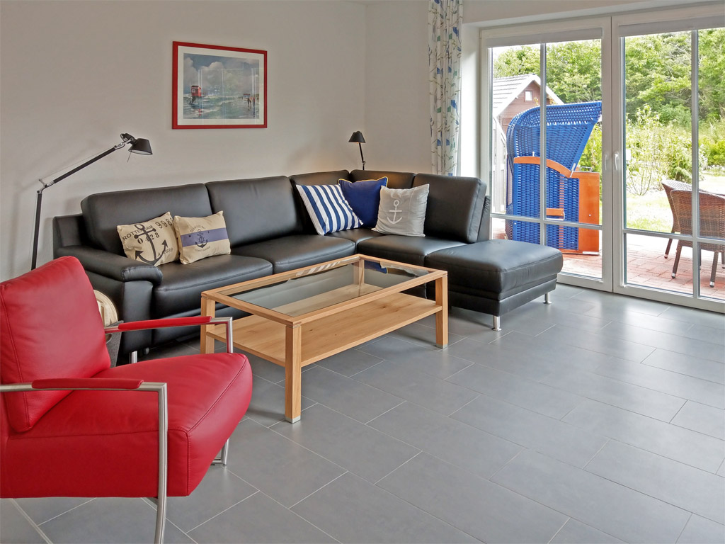 Das großzügig dimensionierte Sofa bietet alle Möglichkeiten der Entspannung - und einen guten Überblick über Ihre Urlaubslandschaft |