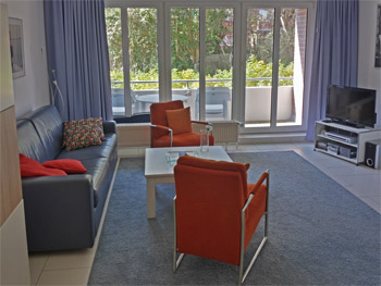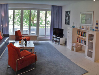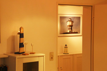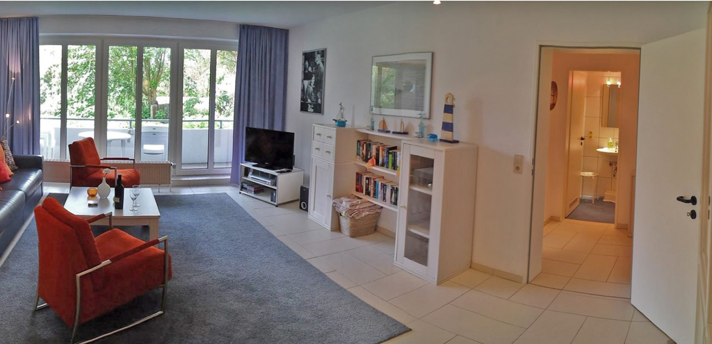 Die ganze Wohnung ist mit hochwertigen weißen Fliesen ausgelegt. Die lichtdurchfluteten Wohn- und Schlafräume mit maritimer Möblierung und Ausstattung bieten ein freundliches Ambiente. WLAN wird ab Frühjahr 2017 verfügbar sein. |