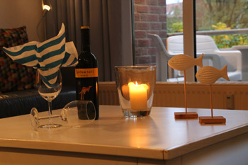 Genießen Sie Ihren guten Tropfen mit Blick auf die Langeooger Gartenkulisse