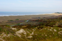 Die typische Aussicht vom Dünenkamm lässt den Blick weit über die Nordsee schweifen.