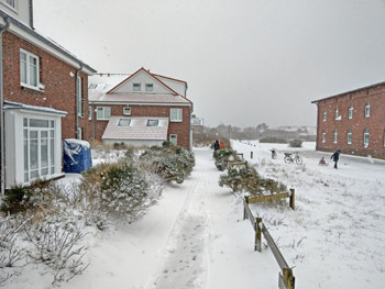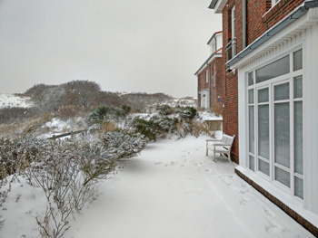 Die Strandvilla I ist wie eine Insel im Schnee |