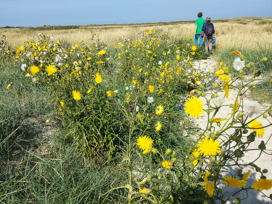 Besonders einsam und reizvoll ist der Gang von der Vogelbeobachtungsstation am Ostende durch den Dünenweg zum Oststrand.
