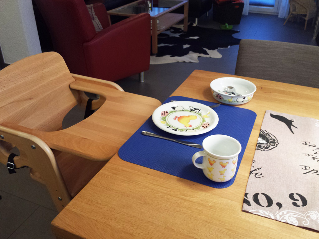 Der Tisch ist für alle gedeckt, Kindergeschirr und -Besteck liegen bereit. Auch Ihr lebhaftestes Kind kann nicht herausfallen: Ein solider Kinderstuhl und ein Sicherheitsgurt bieten maximalen Schutz auch im Überschwang der Urlaubsfreude