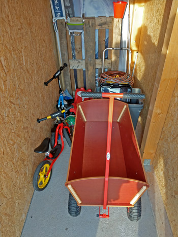 Für Ihre Kleinen stehen Laufrad, Roller, Bollerwagen im Schuppen bereit ...