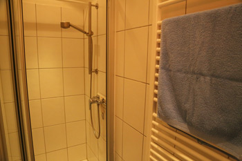 Das Bad empfängt Sie mit kuschelig warmer Atmosphäre, angewärmten Handtüchern für "hinterher" - freuen sich schon auf den frischen Morgenkaffee! |