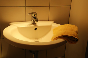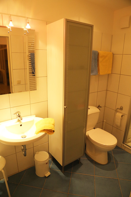 Ihr Bad liegt jenseits des Flures vom Wohnbereich. Hier können Sie sich ungestört regenerieren!