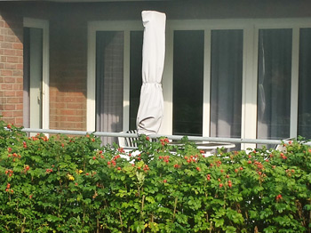 Sie fühlen sich mitten in der Natur: Vom Balkon aus sind die inseltypischen Heckenrosen zum Greifen und Anfassen nah, zur Blütezeit eine Augenweide! Vom Esstisch und Wohnzimmer aus schweift Ihr Blick über die großzügige Gartenanlage.